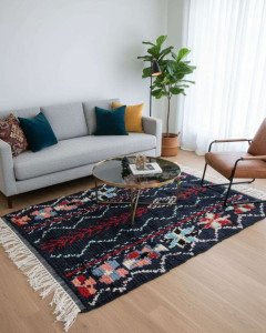 Marockansk Beni Ourain matta är Handgjord av rena ull och naturliga färger.